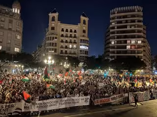 A su llegada a Plaza América se ha alzado una muixeranga, con música en directo, y los asistentes han mostrado las linternas de los móviles, para después leer los distintos manifiestos. En el de BDS han sostenido que quienes quieren "silenciar el pueblo palestino son los mismos que precarizan nuestras vidas, los mismos que nos ignoraron cuando el pueblo se ahogaba. Son la misma gente", han aseverado, a lo que han seguido gritos de 'Mazón dimisión' desde el público.