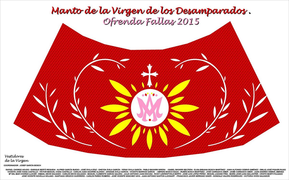 La Junta Central Fallera (JCF) ha presentado este martes la nueva imagen del manto del flores que se confeccionará con los ramos que los falleros aporten durante la Ofrenda de 2015.