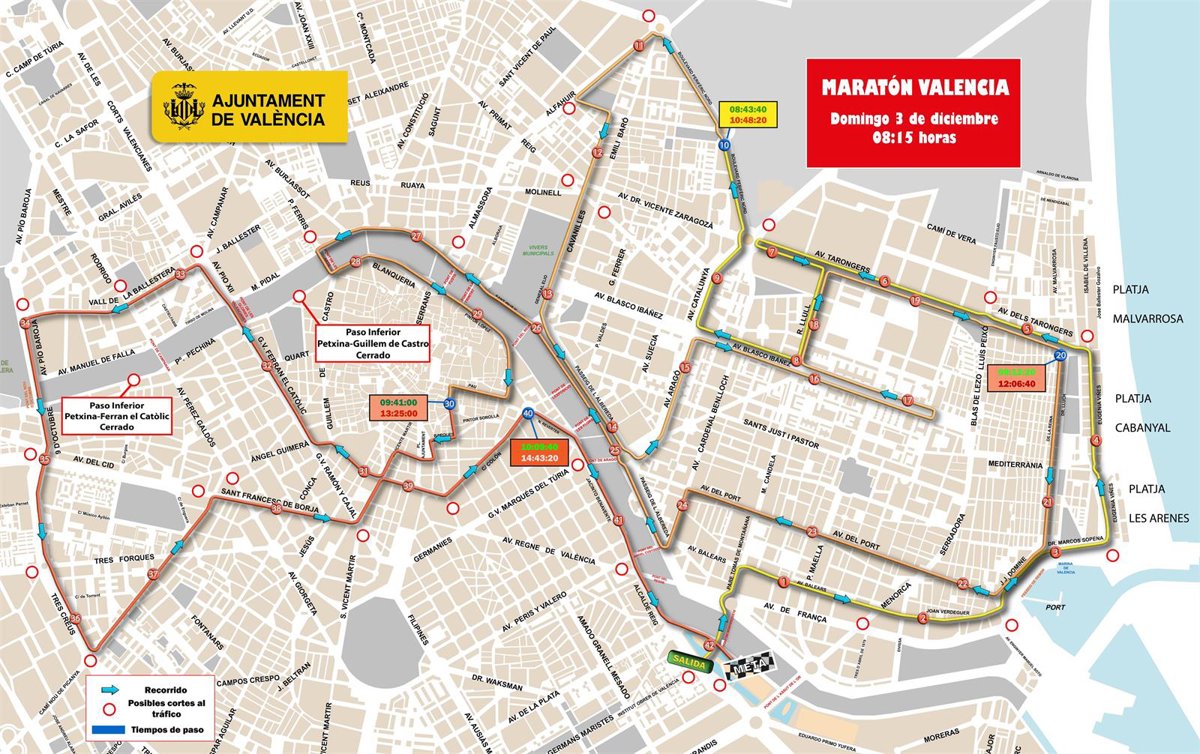 Ante un evento de estas características, que reunirá a cerca de 100.000 personas, el Ayuntamiento de Valncia, la EMT y la Policía local han preparado dispositivos especiales. El inicio de la prueba se hará en ocho salidas que se producirán a las 8.15; 8.25; 8.35; 8.45; 8.55; 9.05; 9.15 y 9.25 horas, desde la plaza del Maratón con el puente de Montolivete, y está previsto que la prueba finalice sobre las 15.00 horas.