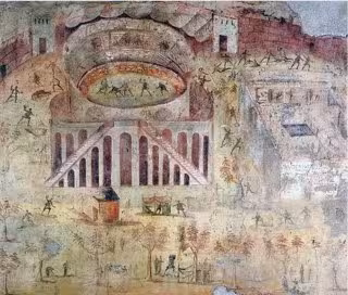 La pieza es una pintura mural que muestra los disturbios en el anfiteatro de Pompeya acaecidos en el año 59. La escena se pintó entre ese año y el 79 (destrucción de la zona por el Vesubio), en el siglo I d.C.