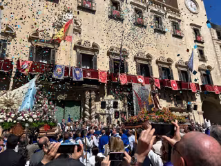Al llegar a la plaza del Abad Penalva, y después del Encuentro, la Virgen de la Alegría ha continuado hasta el convento de las Monjas de la Sangre, donde se le venera, y el Resucitado se ha quedado en la Concatedral de San Nicolás, para poner fin a la Semana Santa de Alicante 2026.
