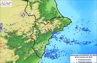 En concreto, el territorio registró 211 rayos, de los cuales 203 se produjeron en la provincia de Alicante, y 489 rayos en aguas marítimas próximas a la Comunitat ya que hubo "mucha actividad de las tormentas al acercarse a la costa".