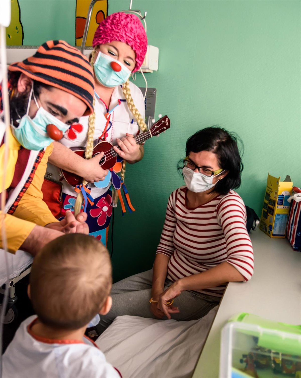 Los payasos terapéuticos de Payasospital realizará 1.300 atenciones a menores hospitalizados en la Comunitat Valenciana gracias a los ingresos obtenidos en la campaña 'Mascarillas que hacen reír', colaboración altruista de Creaciones Euromoda con al apoyo solidario de Lina Vila (Stocklina).