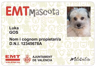 Los animales de compañía podrán viajar en los autobuses de la Empresa Municipal de Transportes de Valncia con el nuevo título 'EMT Mascota' y un carné con su fotografía. No podrán pesar más de 15 kilos y tendrán que llevar un chip identificativo e ir en transportín.