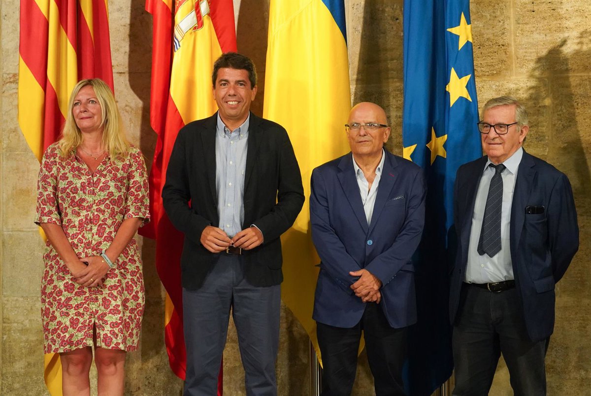 (I-D) la presidenta de USO CV, Maica Imbernón; el president de la Generalitat, Carlos Mazón; el presidente de CSIF CV, Rafael Cantó; y el secretario general del Sindicato Independiente CV, Fermín Palacio. - Eduardo Manzana - Europa Press