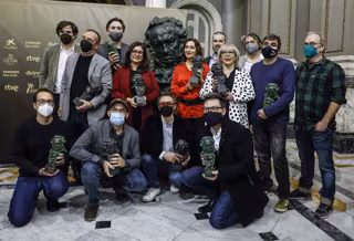 Premiados y representantes del sector audiovisial posan en la presentación de los actos previos a la XXXVI Gala de los Premios Goya, que se celebrará el próximo 12 de febrero en Valncia. - Rober Solsona - Europa Press