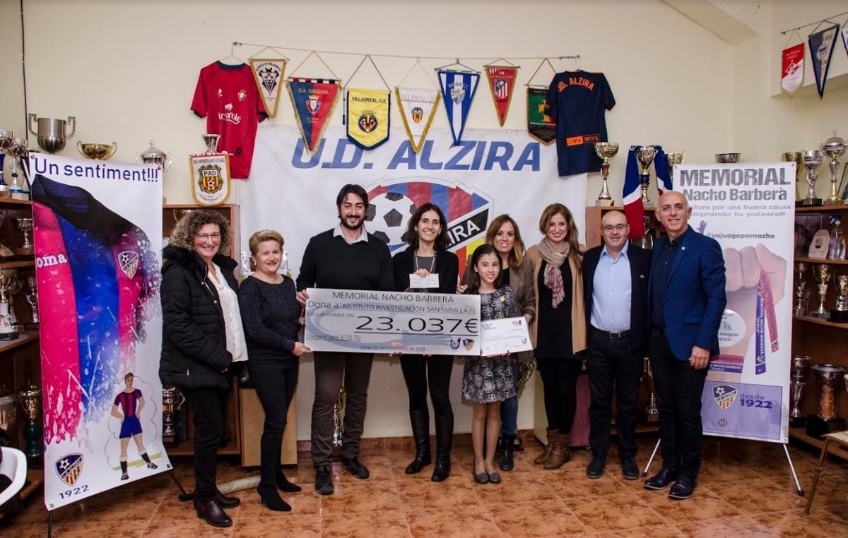 La organización del I Memorial Nacho Barberá ha entregado la recaudación conseguida, un total de 27.837 euros, por esta iniciativa para impulsar la investigación sobre muerte súbita que desarrolla el Grupo de Investigación en Cardiopatías familiares, muerte súbita y mecanismos de enfermedad del Instituto de Investigación Sanitaria La Fe (IIS La Fe).