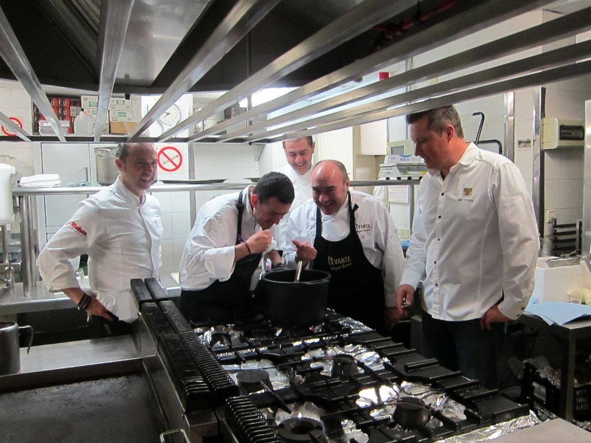 Cinco chefs de la Comunitat Valenciana con estrella Michelín, Miguel Barrera, Ricard Camarena, Kiko Moya, Manolo Alonso y Jorge De Andrés, se han reunido este lunes en Castellón para elaborar un menú único basado en los productos de la tierra y con el que pretenden mostrar a los comensales lo que se está "cociendo" en los fogones de sus restaurantes.