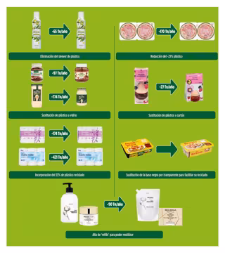 Esta hoja de ruta consta de seis acciones concretas para conseguir en 2025 un triple objetivo: reducir un 25% de plástico en sus envases, que todos los envases de plástico sean reciclables y reciclar todo el residuo plástico generado en sus procesos.
