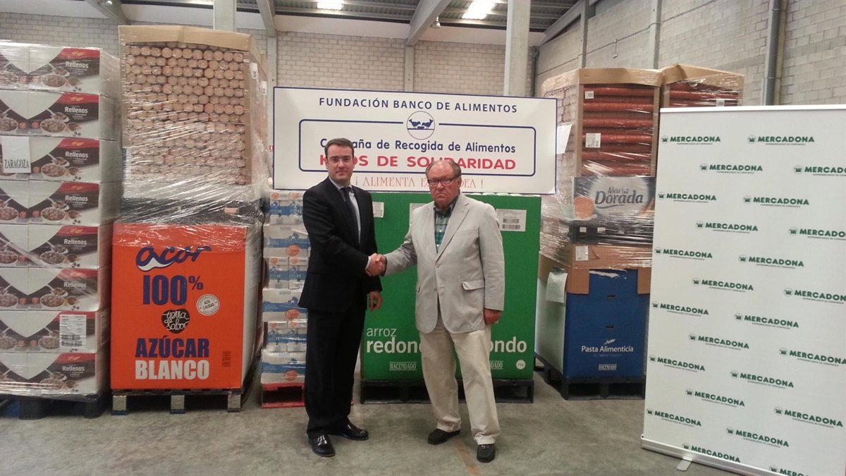 La entrega, que se produce tras renovar un año más el compromiso de Mercadona con el Banco de Alimentos a través de la firma de un convenio de colaboración, ha tenido lugar en las instalaciones que el Banco de Alimentos tiene en Mercazaragoza.