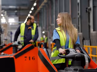 Trabajador y trabajadora de Mercadona en un bloque logístico - MERCADONA