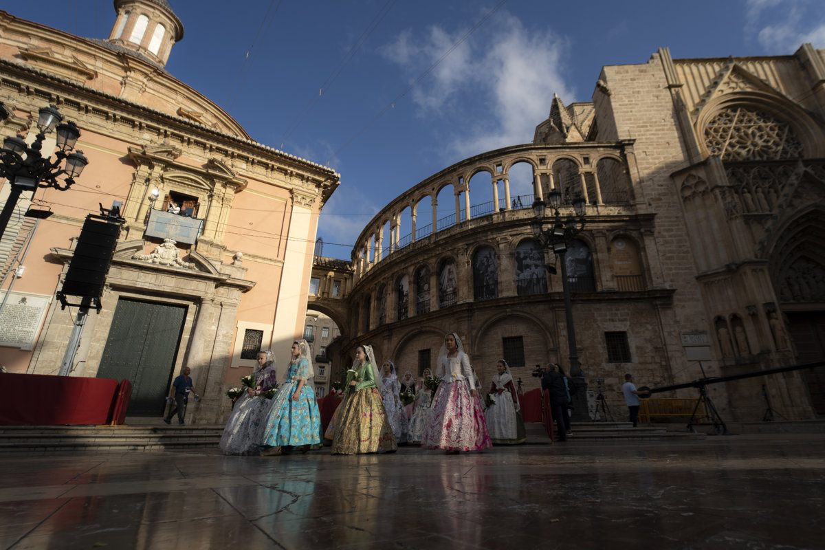 Asimismo, los últimos en pasar ante la patrona esta primera jornada han sido los miembros de las fallas de Benimàmet-Burjassot y Beniferri desde la calle de la Paz y los de La Roqueta-Arrancapins, desde la calle San Vicente.