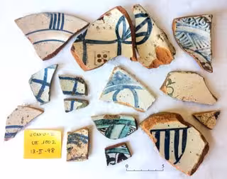 Del mismo modo, los trabajos de excavación han permitido recuperar restos de época moderna entre los que se encuentran piezas esmaltadas de vajilla y numerosos fragmentos de azulejos, muestra de la tradición e importancia de la industria azulejera valenciana.