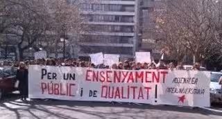 Los manifestantaes marchan tras una pancarta en la que se puede leer el lema 'Por una enseñanza pública y de calidad' y corean lemas como 'Más educación, menos Policía' o 'El pueblo unido jamás será vencido'.
