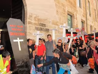 Entre los manifestantes, unos 6.000 según la organización, se encontraban el síndic del PSPV-PSOE, Antonio Torres, la portavoz de grandes eventos del grupo parlamentario socialista, Eva Martínez, los portavoces de Compromís Enric Momera y Mónica Oltra, o la síndic de EU, Marga Sanz, entre otros políticos, además de representantes sindicales.