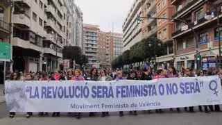La manifestación en el Día de la Mujer ha comenzado en la Plaza San Agustín de Valencia, en la que se han congregado numerosos ciudadanos, asociaciones, colectivos, partidos políticos y sindicatos con pancartas y carteles con lemas como "la revolución será feminista o no será" --que encabezaba la marcha--, "el machismo mata", "el aborto es un derecho, no un delito" y "decidir nos hace libres", entre otras.