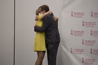 Miguel Mínguez y Ana Barceló se dan un abrazo ras el acto de trapaso de cartera - JORGE GIL/EUROPA PRESS