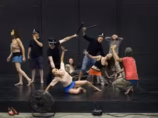 Además, el artista enmascara los participantes, una estrategia muy característica que le permite potenciar bien el individuo, el personaje o las relaciones interpersonales.
