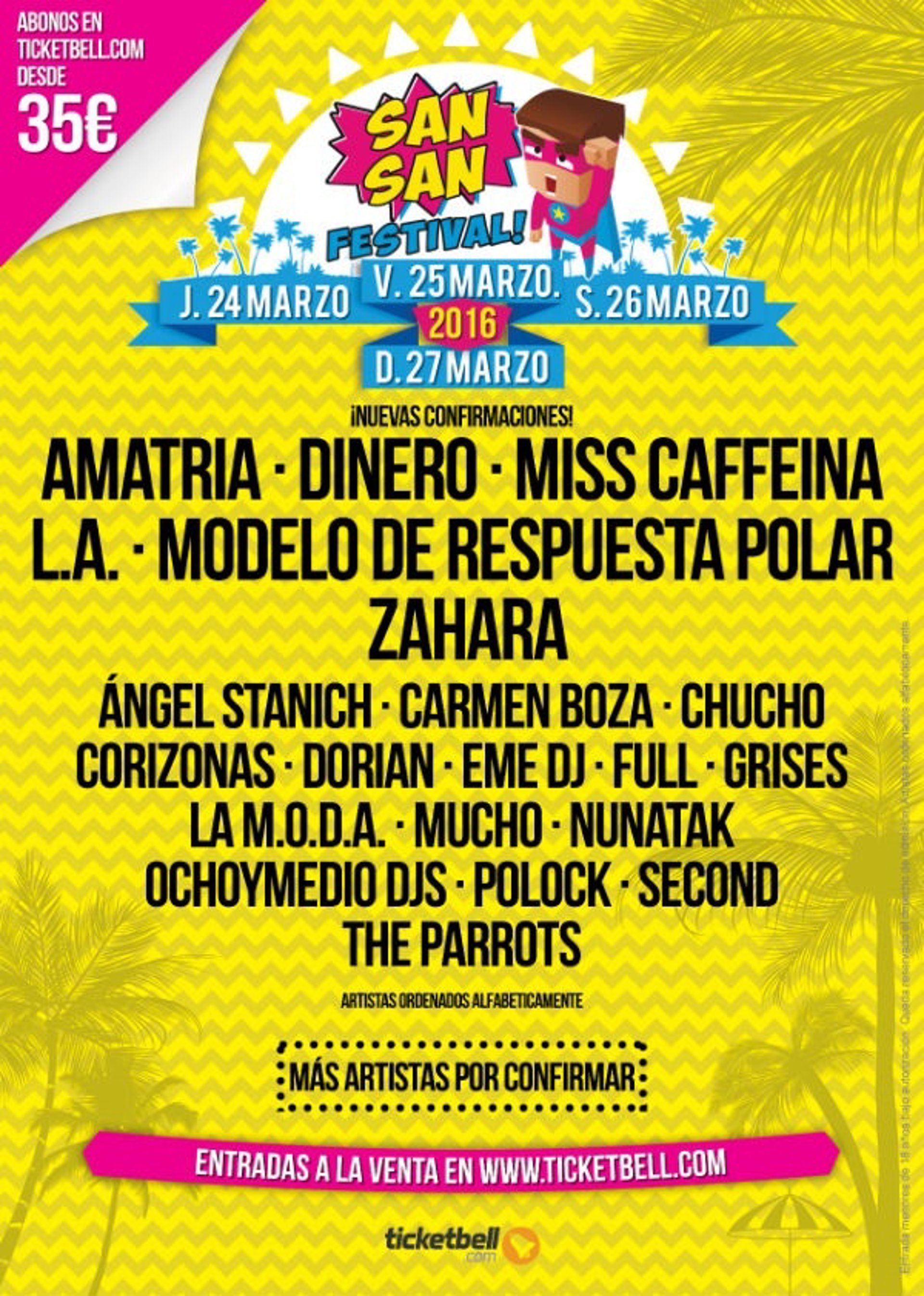 L.A., Miss Caffeina, Zahara y Dinero están entre los nuevos artistas confirmados para el SanSan Festival 2016, en una tanda en la que también se apuntan al cartel Amatria y Modelo de Respuesta Polar.