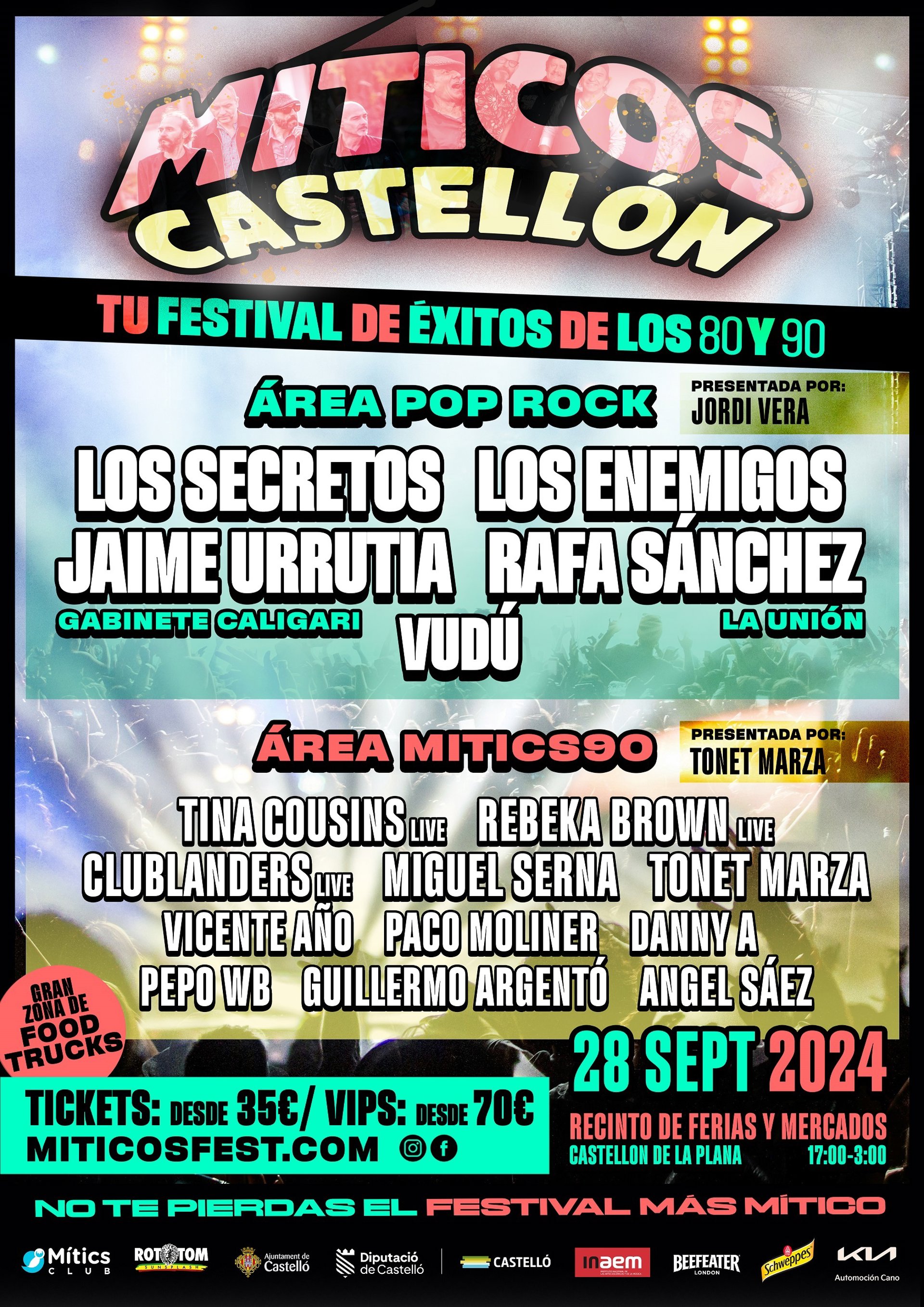Mitics90 Área, un espacio 100 por cien remember, dentro del festival Míticos Castellón, que se celebrará el 28 de septiembre en el Recinto de Ferias y Mercados de Castellón, nace "por un tema generacional". "Queremos llegar a una generación atraída por el pop rock de los 80 y los 90, por la música remember que marcó también esas décadas o por ambos estilos, por qué no", según ha explicado Joaquim López, director del Míticos Castellón.