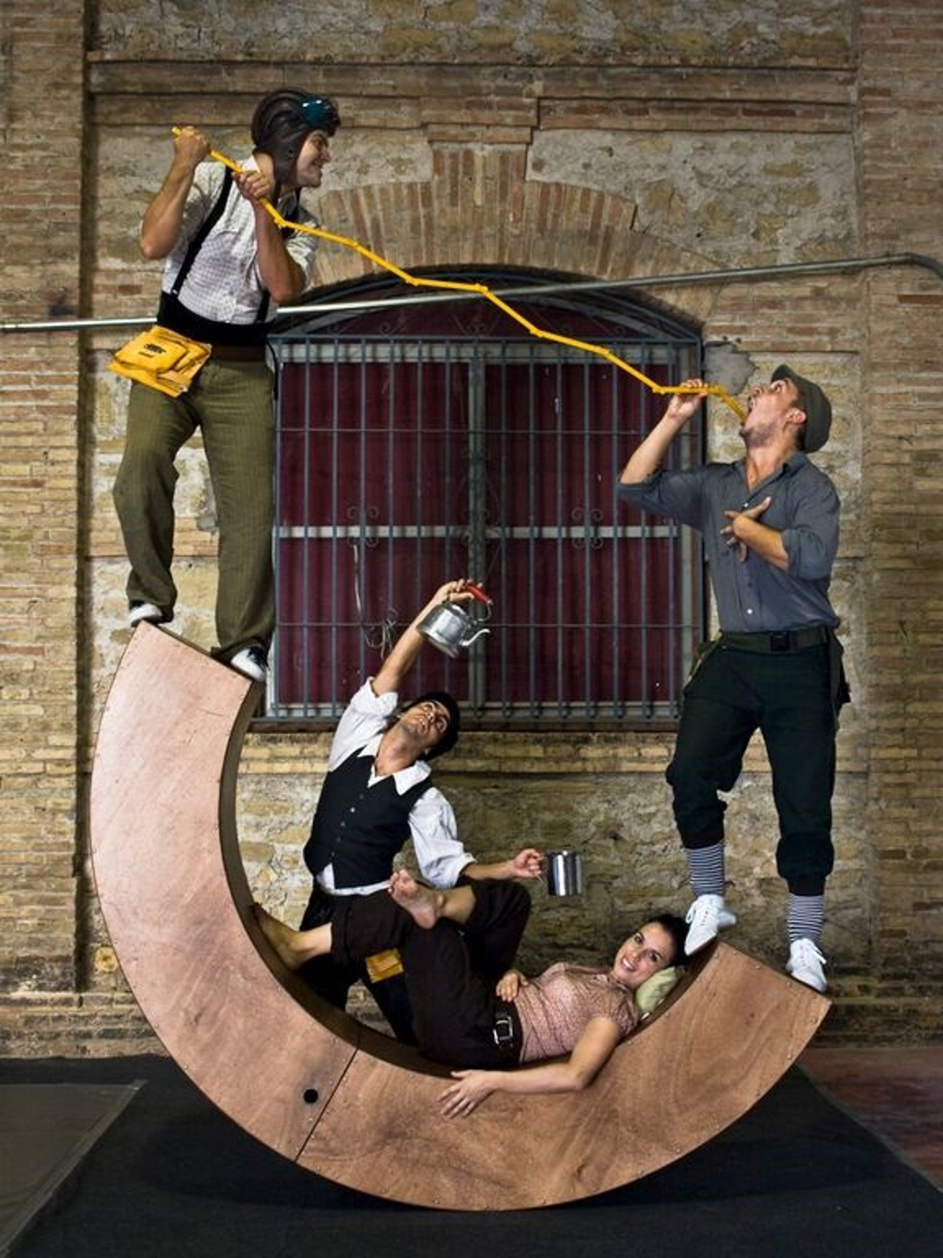 Los cuatro personajes tienen instrucciones de construir esta rueda pero no saben exactamente cómo debe quedar y mucho menos cuál debe ser el proceso de montaje. Será este desconocimiento el causante de todas las situaciones divertidas, emocionantes y arriesgadas que surgen durante el espectáculo", han comunicado desde la organización.