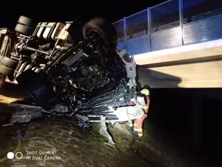 La cabina de uno de los camiones ha quedado atrapada entre dos puentes, por lo que los bomberos han utilizado una grúa para levantarla y excarcelar a los conductores, detalla el Consorcio Provincial de Bomberos de Valencia.