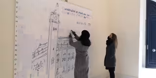 Los visitantes que se acerquen al Edificio del Reloj se encontrarán en el centro de la exposición la columna en la que se subía el expresidente Adolfo Suárez. Acompañando a esta icónica imagen, se localizan también diferentes ilustraciones de José Luis Rodríguez Zapatero, Donald Trump, Mariano Rajoy o Pedro Sánchez, o guiños a sus amigos de profesión como Forges, entre otras destacadas personalidades.