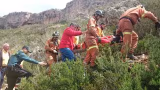 Bomberos de Alzira han rescatado a la mujer, que ha sido localizada a unos 200 metros de la carretera. En el servicio, que se ha prolongado de 12.34 a 14.21 horas, ha participado la brigada de la Diputación en Tous y agentes de la Guardia Civil, que han subido a la herida en una camilla hasta el lugar donde ha podido ser atendida por los servicios médicos.