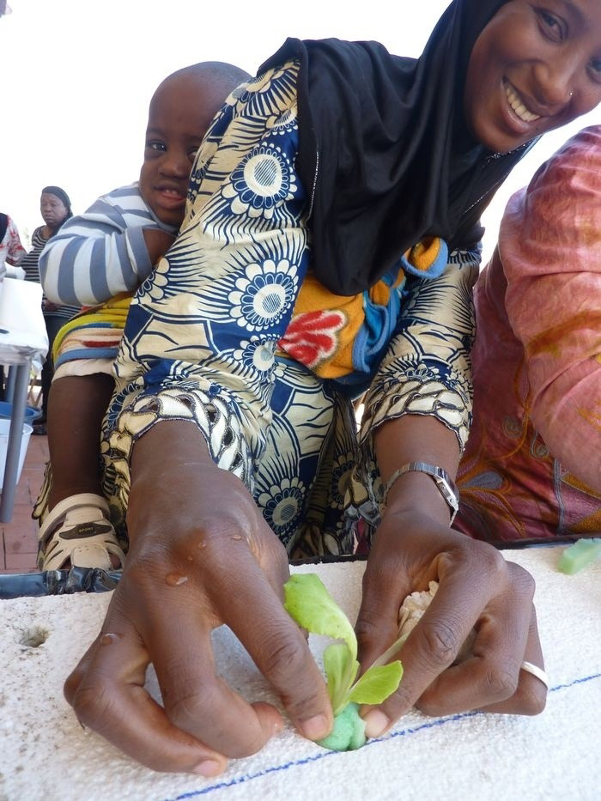 Mujeres africanas de la Comunitat Valenciana desempleadas de larga duración aprenden a cultivar hortalizas en sus propias casas para poder disponer de alimentos en su propia familia e incluso tener la posibilidad de obtener algún ingreso extra mediante la venta de los excedentes.