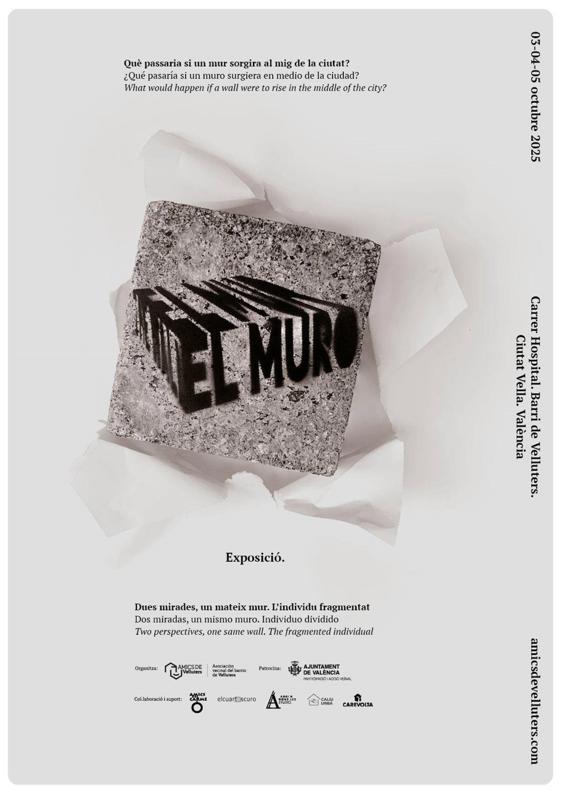 ¿Qué pasaría si un muro atravesara el corazón de Valencia y separara a vecinas y vecinos de turistas? Esa es la pregunta que propondrá la exposición 'El Muro - Individuo Dividido', organizada por la asociación vecinal Amics de Velluters, que se podrá visitar del 3 al 5 de octubre en la calle Hospital, frente al Museo de la Seda de València.