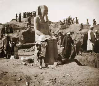 El yacimiento de Tanis se excavó por misiones francesas desde los años 30 del siglo XX. Pierre Montet, que dirigió esta excavación hasta 1956, era un apasionado de la fotografía y, a lo largo de más de 30 años de investigación, realizó miles de tomas. Como la mayoría de los arqueólogos de su época, hizo --o encargó hacer a su hija Camille desde 1946-- miles de imágenes sobre placas y realizó una serie de álbumes a partir de copias en papel.