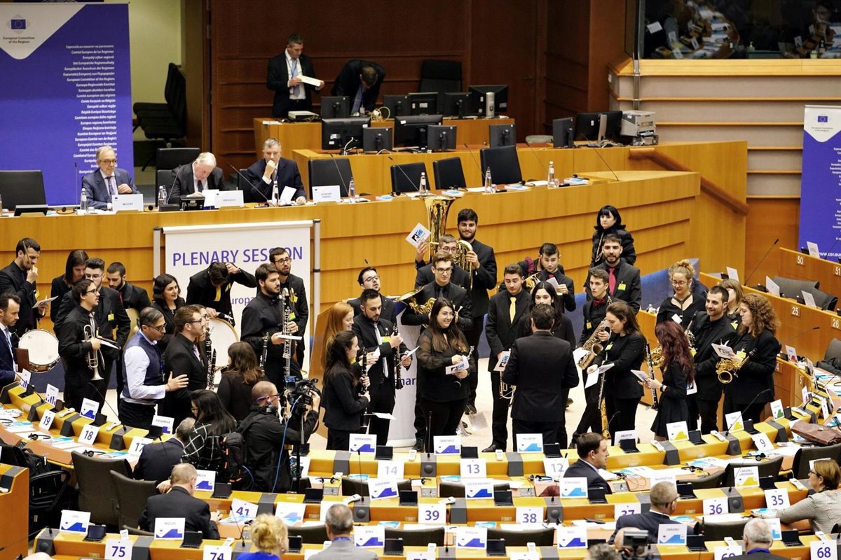La Joven Banda Sinfónica de la Federación de Sociedades Musicales de la Comunitat Valenciana (FSMCV) ha hecho sonar la música valenciana en el "corazón de Europa" con una interpretación en directo del 'Himno de Europa' en el hemiciclo del Europarlamento, en la sesión de apertura de la nueva legislatura del Comité de las Regiones.