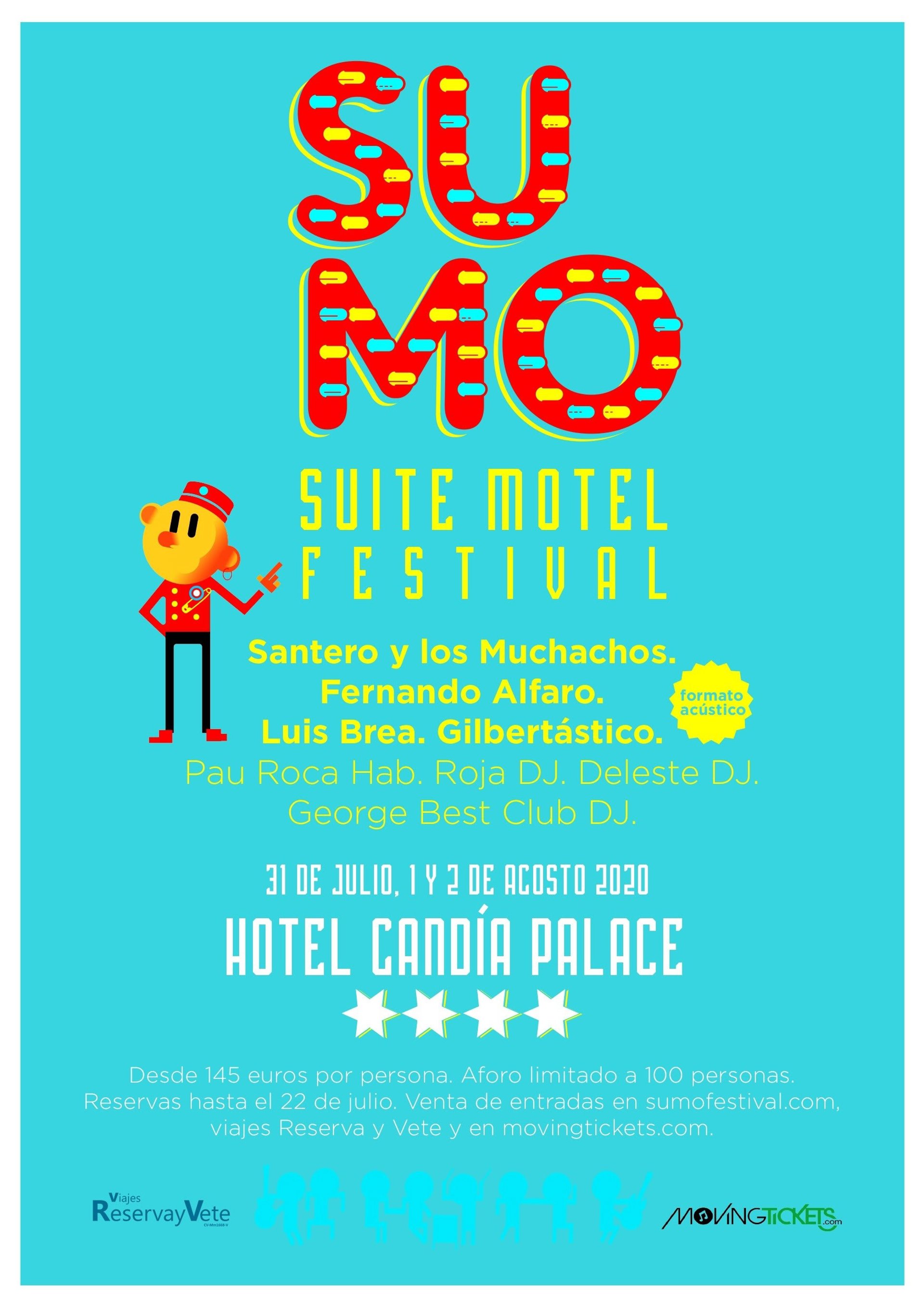Suite Motel Festival (SUMO) nace para ofrecer conciertos de música en directo dentro de hoteles. La idea va más de un festival de música y quiere ofrecer una nueva opción vacacional con la música como eje principal, en un entorno íntimo de máximo 100 personas y con alojamiento y pensión completa incluida en el hotel donde se van a celebrar los conciertos.