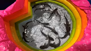 El numeroso parto se produjo sobre las 22.00 horas del pasado jueves, 28 de abril, mientras las familias asistentes a la 'Dormir con Tiburones' se preparaban para pasar una noche en el acuario. Tras detectarse el primer nacimiento, se activó el protocolo de actuación y control urgente para entrar rápidamente al agua y recoger las crías con un salabre.