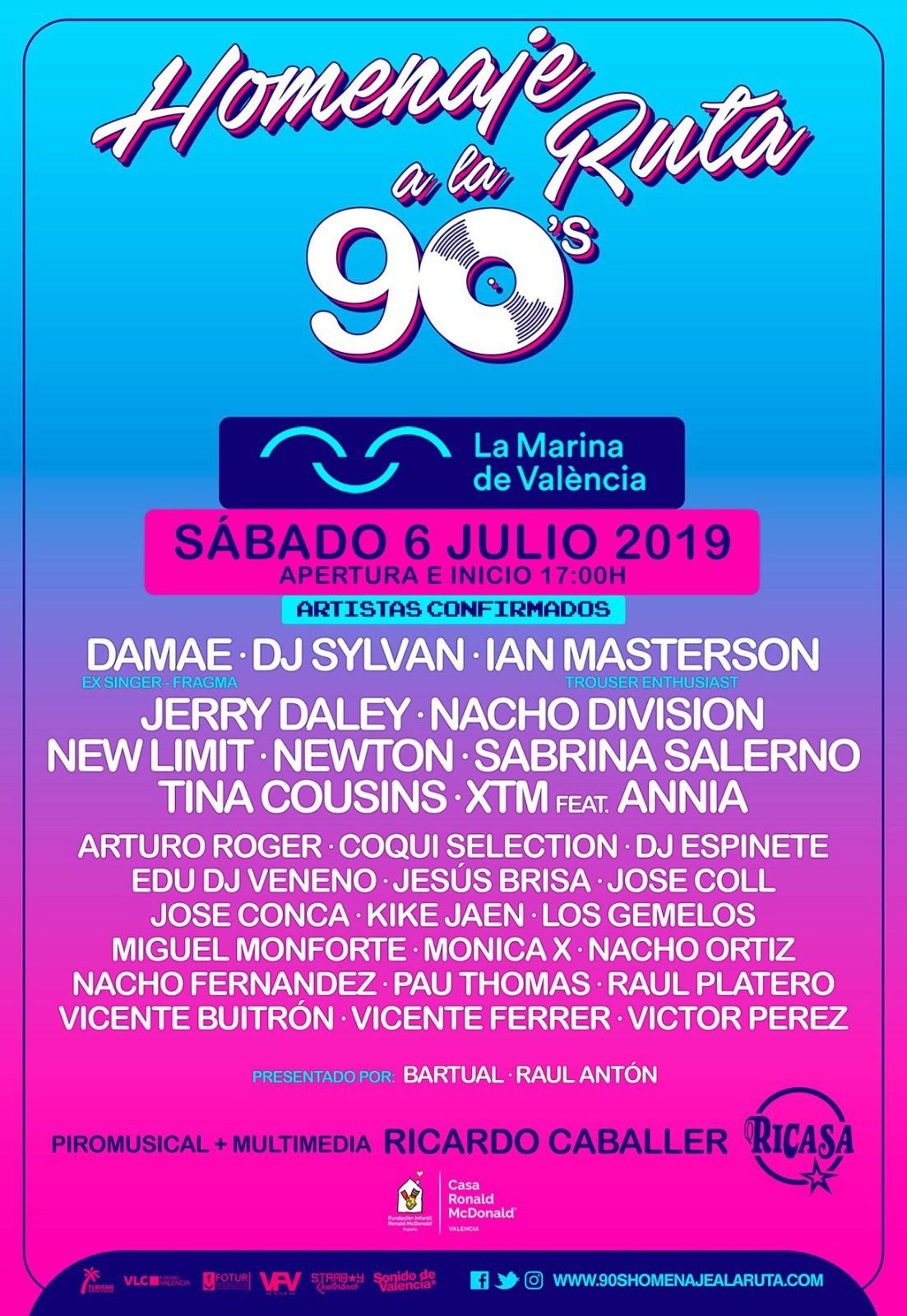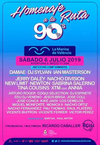 Nacho Fernández y XTM son las últimas confirmaciones del '90s Homenaje a la Ruta', el próximo sábado 6 de julio en La Marina de Valncia. Habrá multimedia, efectos y pirotecnia durante todo el festival, con un piromusical y la actuación de la mítica Sabrina Salerno como colofón.