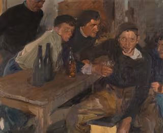 Sorolla, describe la National Gallery, "representa el drama humano de los efectos devastadores del alcoholismo: cinco hombres en varios estados de embriaguez se reúnen en el oscuro interior de una taberna. "Uno de ellos, más borracho que los demás, mira directamente al artista con ojos llorosos mientras otro empuja un vaso de sidra hacia él, burlándose de su estado de embriaguez".