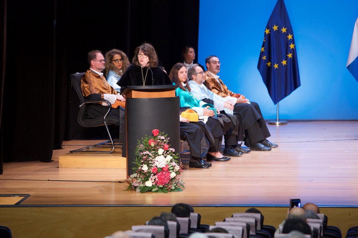 En su intervención, la rectora ha señalado que la UA "ha avanzado mucho en la aplicación de la Ley de Ordenación del Sistema Universitario (LOSU) y ha trabajado con ahínco para lograr la financiación que necesitamos para aplicarla".