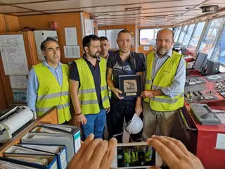 Este primer servicio contó con el tradicional encuentro y entrega de metopas a los responsables de Akkon Lines por parte de representantes de Valenciaport, según ha informado la APV en un comunicado. El director de Navieras de Valenciaport, Manuel Rodríguez hizo entrega de un 'socarrat' al segundo oficial del buque 'Greta'.