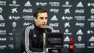 El entrenador del Valencia, Gary Neville, aseguró este viernes que "para nada" se juega el puesto este sábado ante el Espanyol y que ahora lo único que le importa es centrarse en el encuentro, afirmando que está "convencido" de que si sus jugadores siguen trabajando de la manera que lo están haciendo llegarán los buenos resultados.