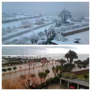 Dénia amanecía este miércoles blanca, con su castillo y sus playas cubiertos de nieve, una estampa que los habitantes de esta localidad de La Marina Alta no veían desde hace décadas y que tras el paso del temporal ha dejado las calles cubiertas de agua.