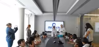 Después del acto de donación, que se ha celebrado en la sala de juntas de la nueva sede de Incliva, Elena y sus amigos han visitado las nuevas instalaciones del instituto, en particular su biobanco, y han recibido una breve charla sobre la investigación y la genética por parte de la investigadora Gloria Ribas.