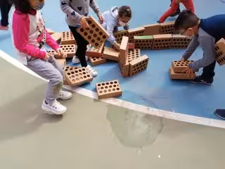 Alumnos del CEIP sant Pere Apstol de Real de Montroi (Valencia) se convierten este miércoles en artistas falleros plantando una falla de 2.000 ladrillos de cartón con trasfondo de "esperanza post-pandemia", ya que cada ladrillo simboliza "un milímetro de la distancia de seguridad que nos separa en esta era de COVID".
