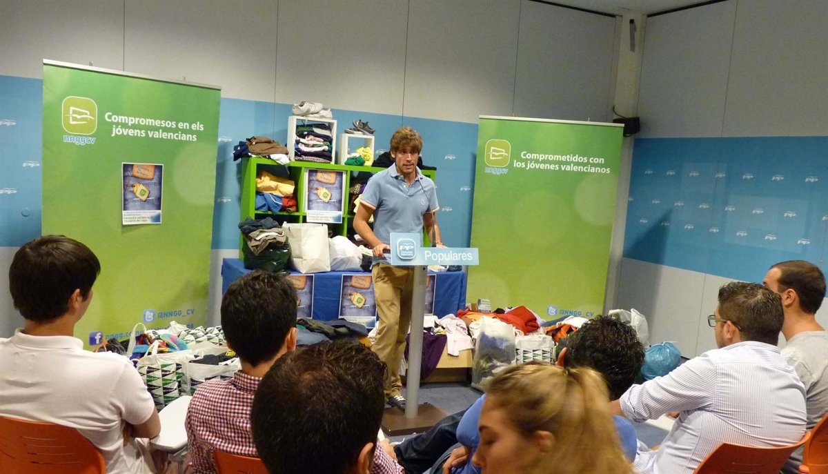 El presidente de Nuevas Generaciones de la Comunitat Valenciana, Juan Carlos Caballero, ha realizado este miércoles el balance de esta campaña que NNGG inició el pasado mes de julio y que estará activa hasta final de septiembre para, según ha explicado, "aprovechar el cambio de ropa tanto de verano como de invierno".