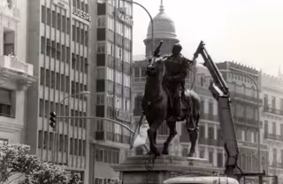 Retirada de la estatua ecuestre de Franco --el 9 de septiembre de 1983-- de la plaza del Ayuntamiento de Valncia - POLICÍA LOCAL VALNCIA