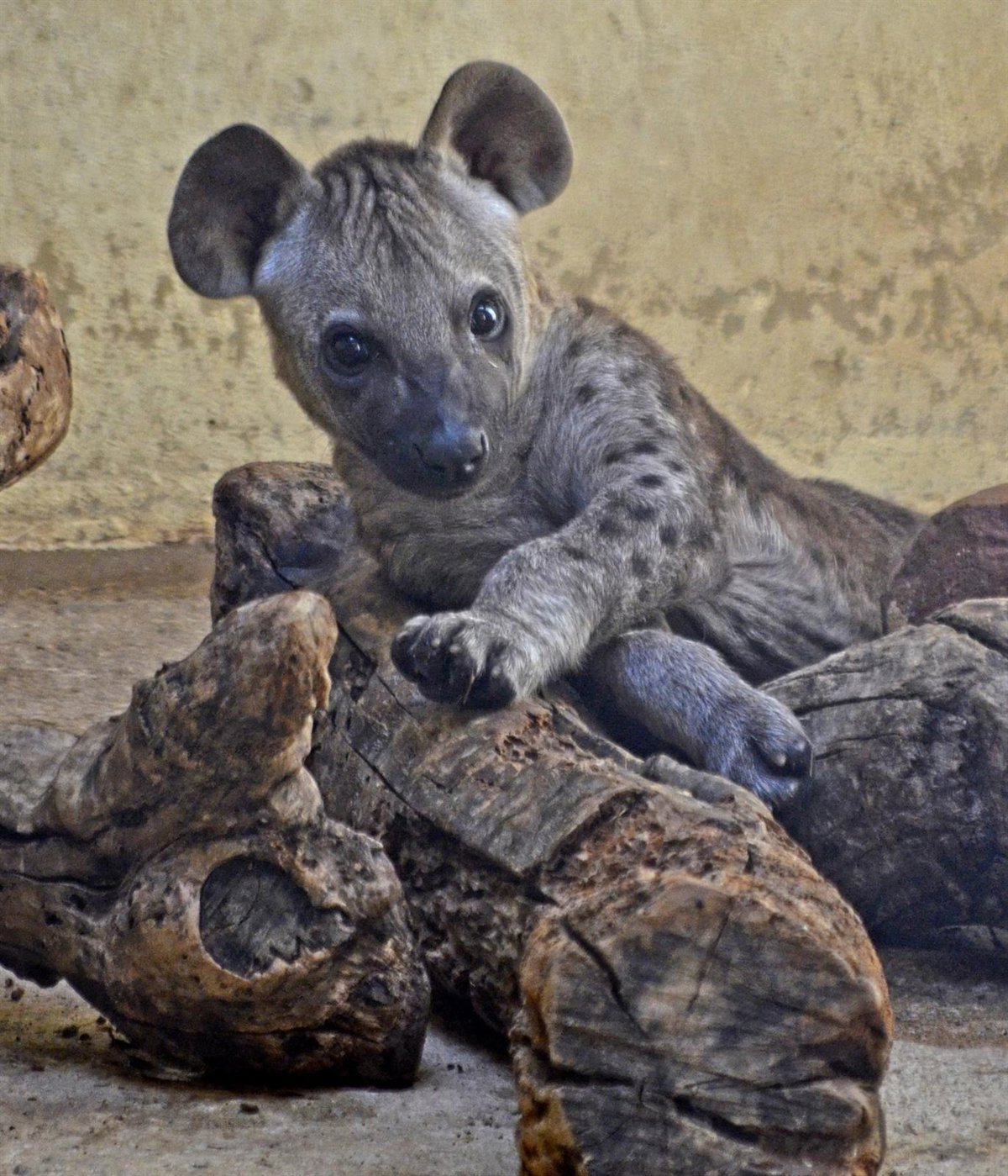 La pequeña hiena manchada, Crocuta crocuta, ha estado siendo atendida y vigilada por su madre en sus recintos interiores, donde también disponen de un patio para disfrutar del beneficioso sol en las horas de menor calor. Próximamente se prevé que comience a salir a la vista del público a determinadas horas, eso sí siempre a la voluntad de la madre y la cría.
