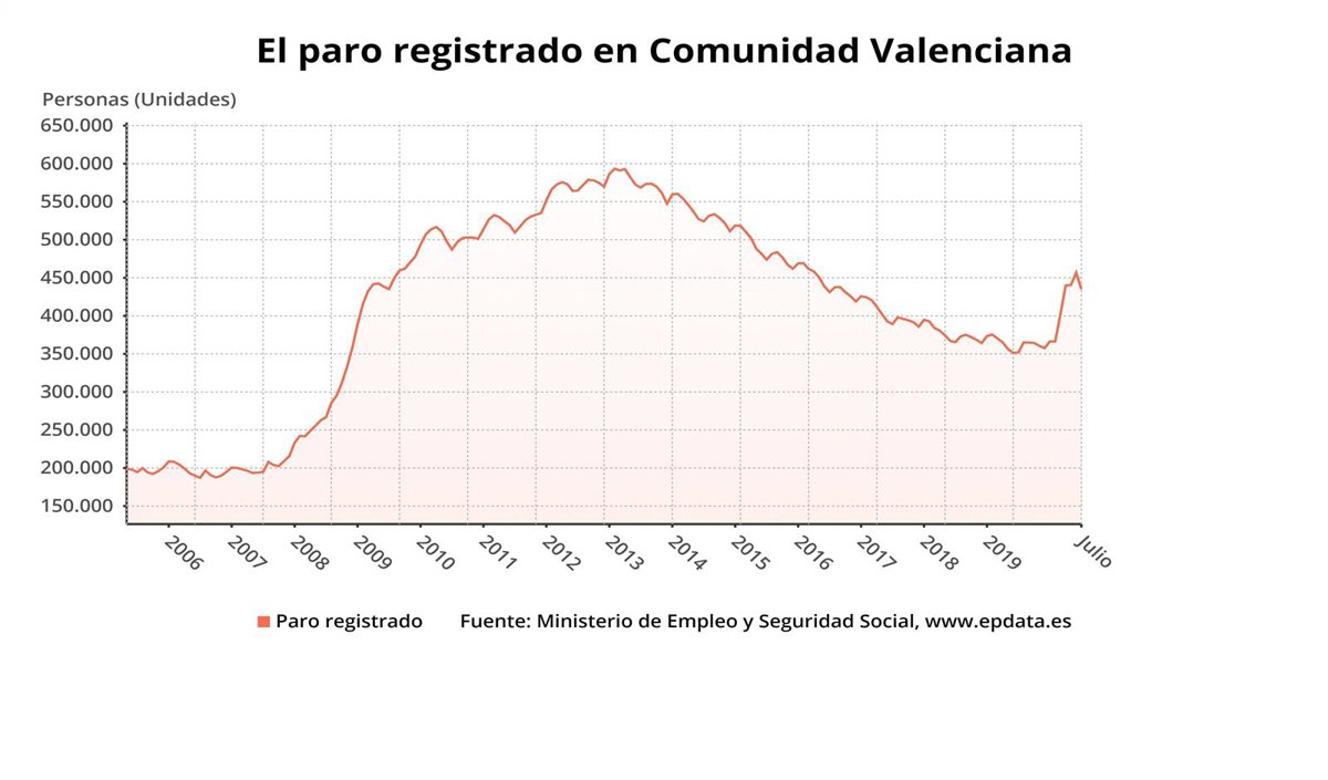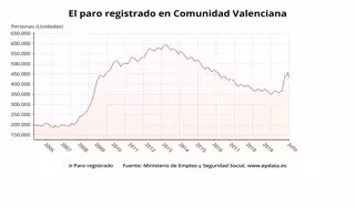 Gráfico de la evolución del paro en la Comunitat Valenciana - EPDATA