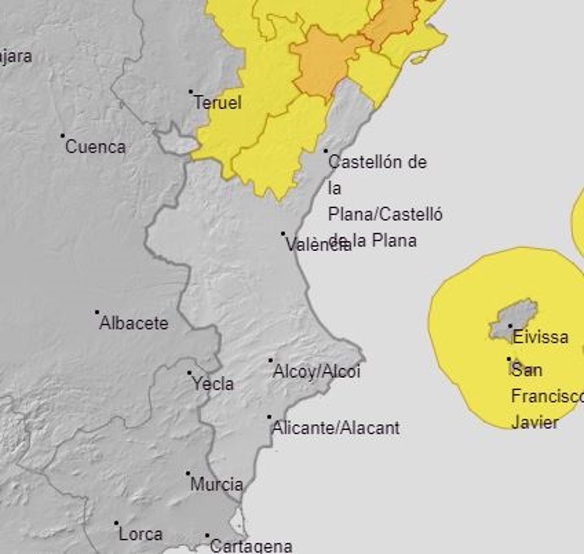 Avisos meteorológicos activos en la Comunitat este sábado - AEMET