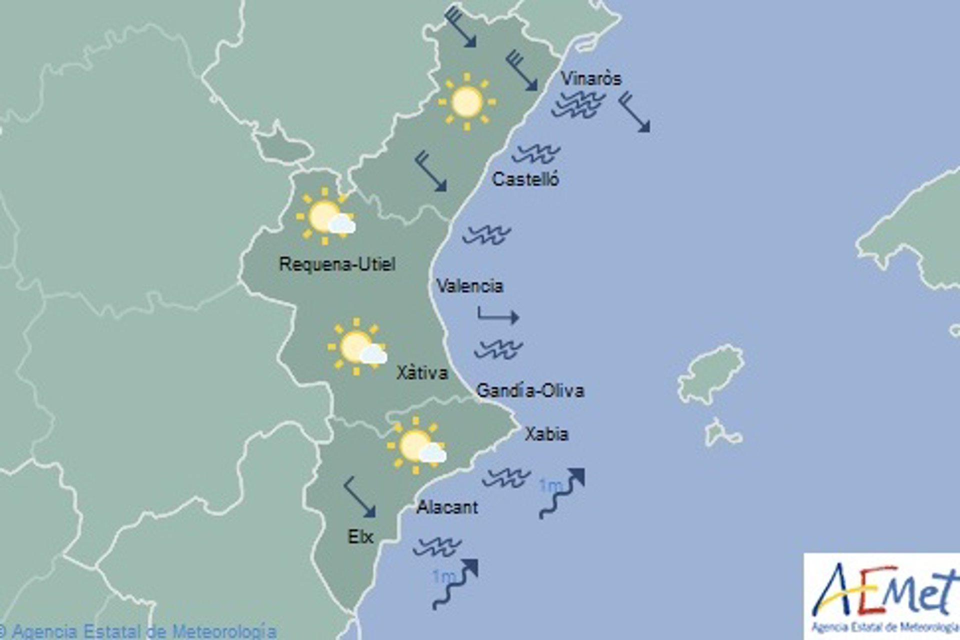 De este modo, se alcanzarán máximas de 25 grados en la Comunitat Valenciana que en Alicante y Castellón llegarán a los 23 grados y en València a los 22.