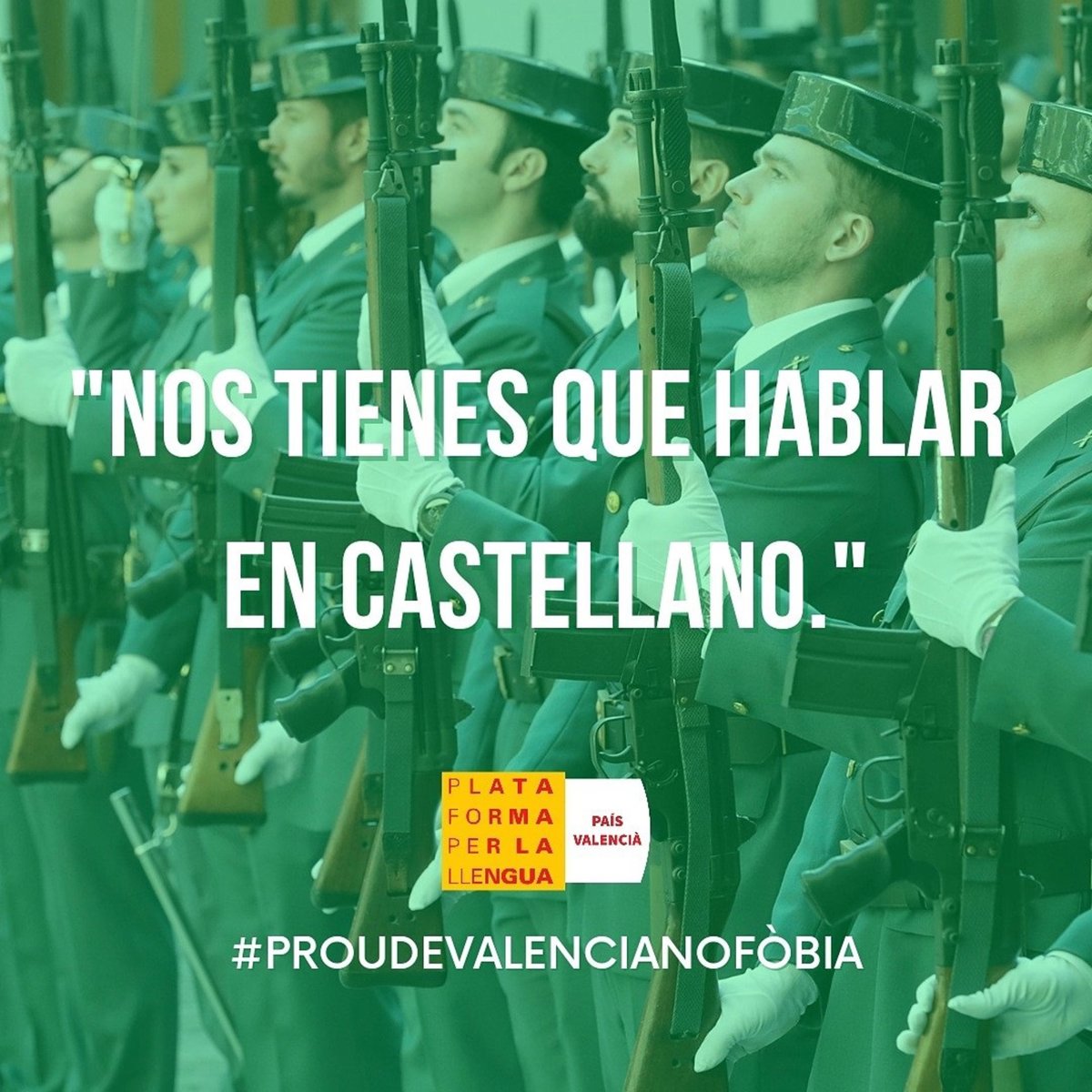 Plataforma per la Llengua denuncia este miércoles "una nueva actuación valencianofóbica de la Guardia Civil" y reclama que el instituto armado elabore un protocolo de atención en valenciano para evitar este tipo de situaciones.