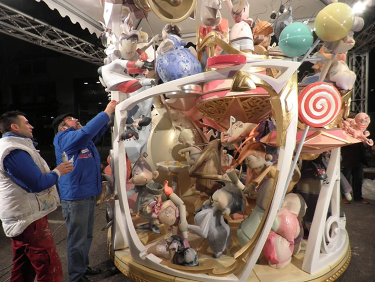 La Falla Pediatra Jorge Comín-Serra Calderona (Nou Campanar) vuelve a reinar después de tres años en la categoría Infantil al proclamarse esta noche ganadora del primer premio de la Sección Especial con el monumento 'La boda de mis padres...en fotos', obra del artista Julio Monterrubio.
